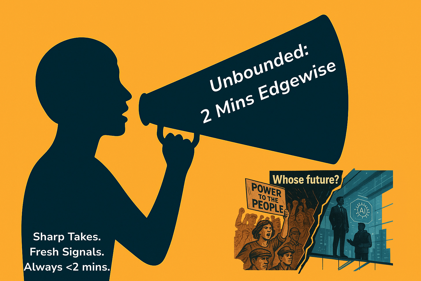 Unbounded: 2 Minutes Edgewise delivers sharp, fast takes on current events, fresh revelations, and just cool things. Provocative or hopeful or fiery — it will always be brief, always grounded, and always unbounded.
